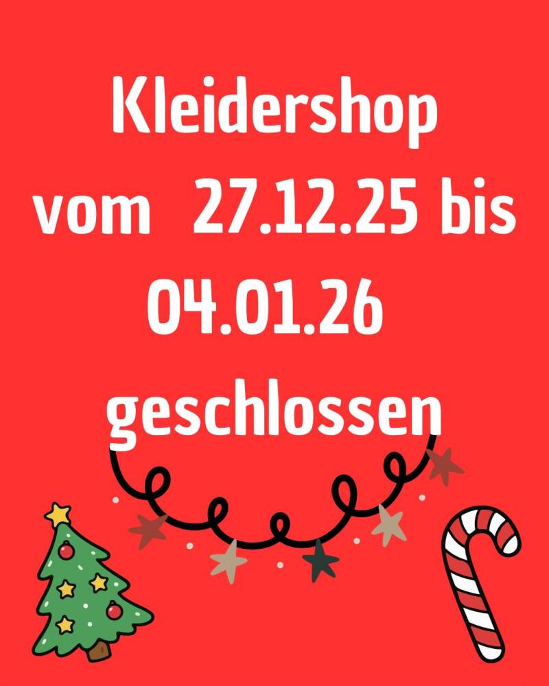 Der DRK Kleidershop Scheeßel bleibt vom 27.12.25 bis 04.01.26 geschlossen. Wir wünschen Frohe Weihnachten und einen guten Rutsch ins neue Jahr!